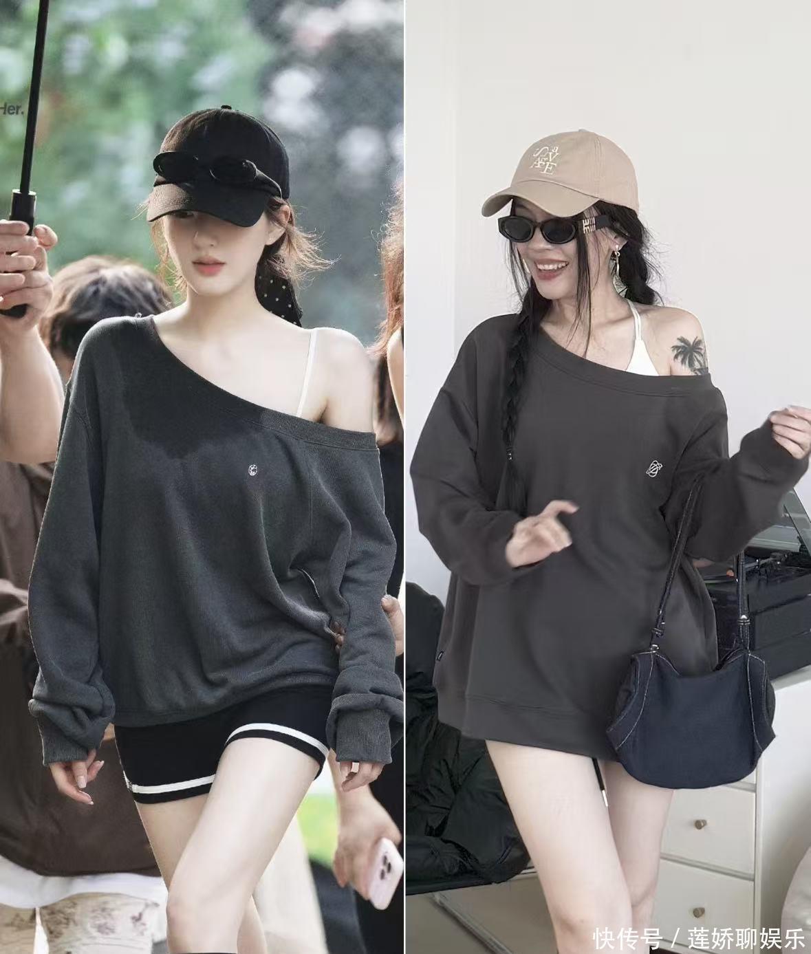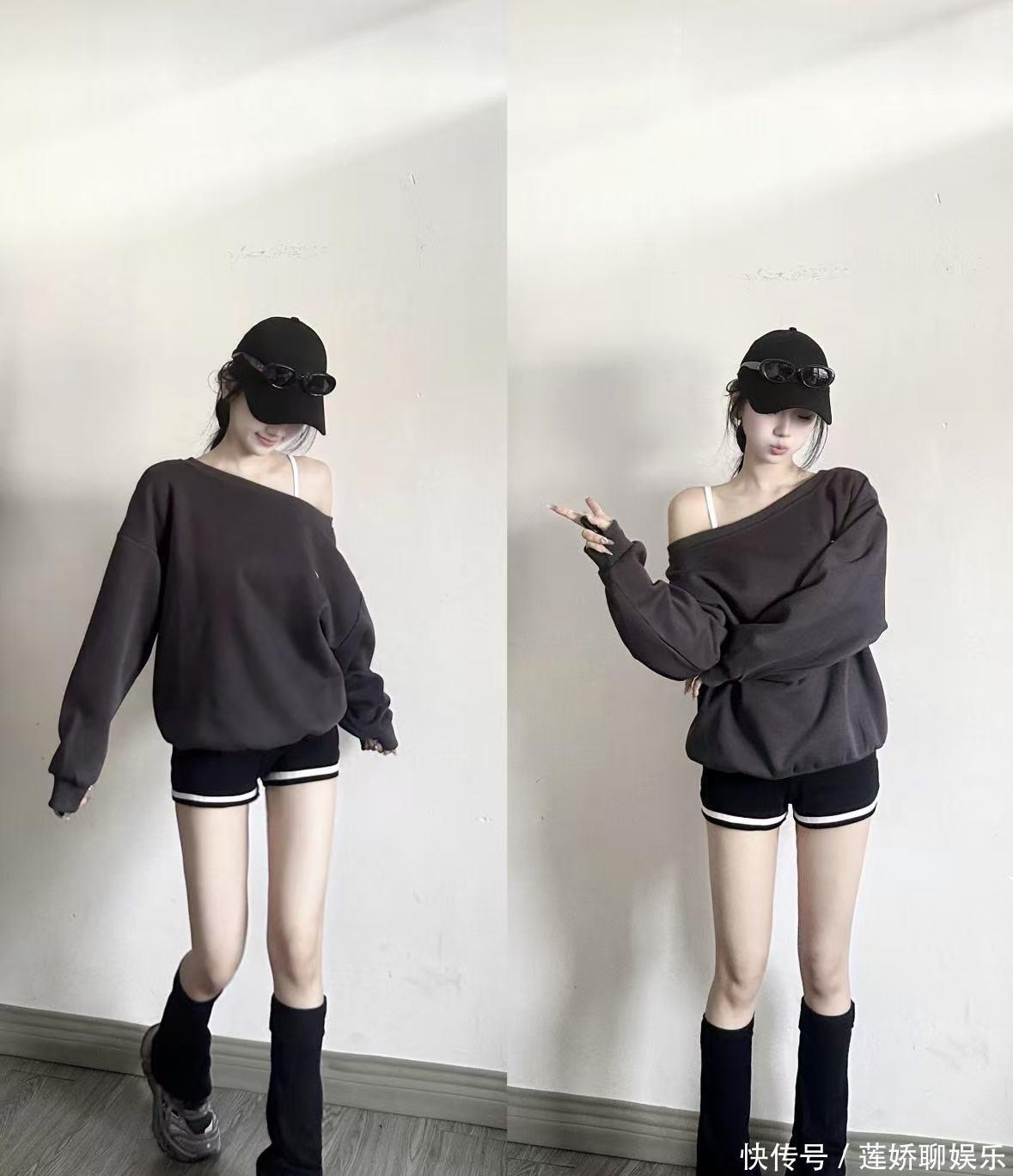 普通人要点:“下衣失踪”穿法适合腿型好看的姐妹。如果担心,内搭一条短裤,安全感十足。公式四:休闲减龄风 = Oversize卫衣/毛衣 + 短打/紧身下装怎么抄:一件宽松的卫衣或毛衣,搭配短裙、短裤或紧身Legging。这是经典的“上宽下紧”穿法,特别显瘦显活力。像赵露思那样,可以把卫衣领口拉成“斜肩”穿,增加一点小性感。搭配长筒袜和运动鞋,青春感满分。