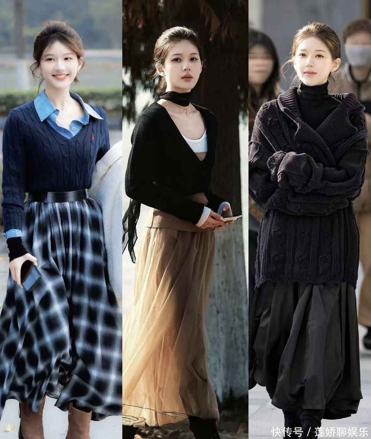几个可以直接“抄”的搭配公式公式一:温柔小姐姐氛围 = 针织衫 + 垂感半裙/修身长裙怎么抄:选择一件软糯的纯色针织衫(米白、燕麦色、淡蓝色最安全),搭配一条有垂感的缎面半裙或是一条修身的针织长裙。记得把针织衫前襟轻轻掖进裙腰,或者选择短款。鞋子配一双简约的乐福鞋或低跟单鞋,温柔感立刻有。