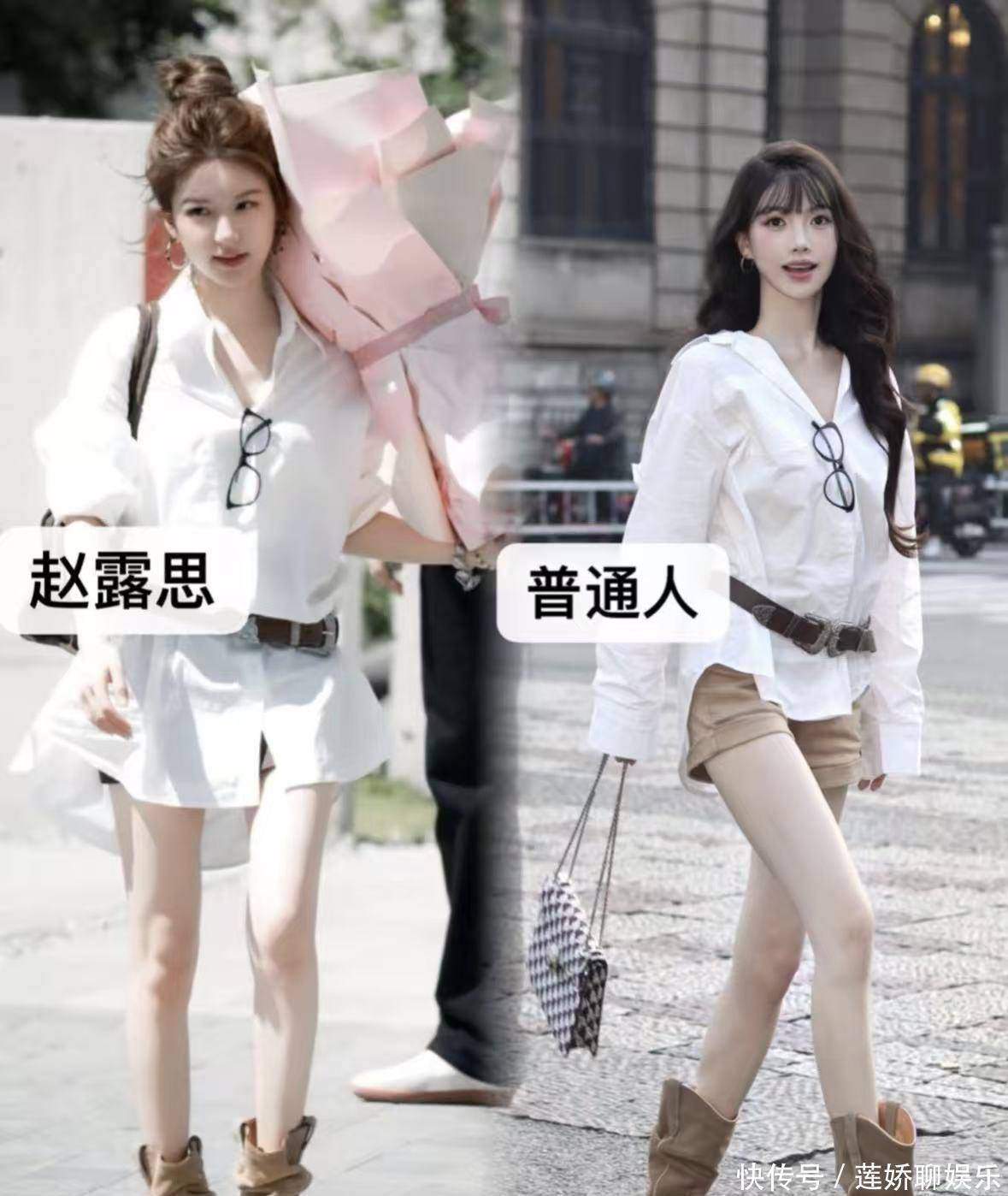 普通人要点:搭配短裤时,长度在大腿中部最显高。怕冷的话,换成紧身牛仔裤或鲨鱼裤也一样好看。普通人要“偷师”的3个核心技巧制造“呼吸感”:赵露思的穿搭很少裹得严严实实。V领、恰到好处的露肤(锁骨、脚踝)、衬衫解开两颗扣子,这些小心机能打破沉闷,让基础款变得不普通。